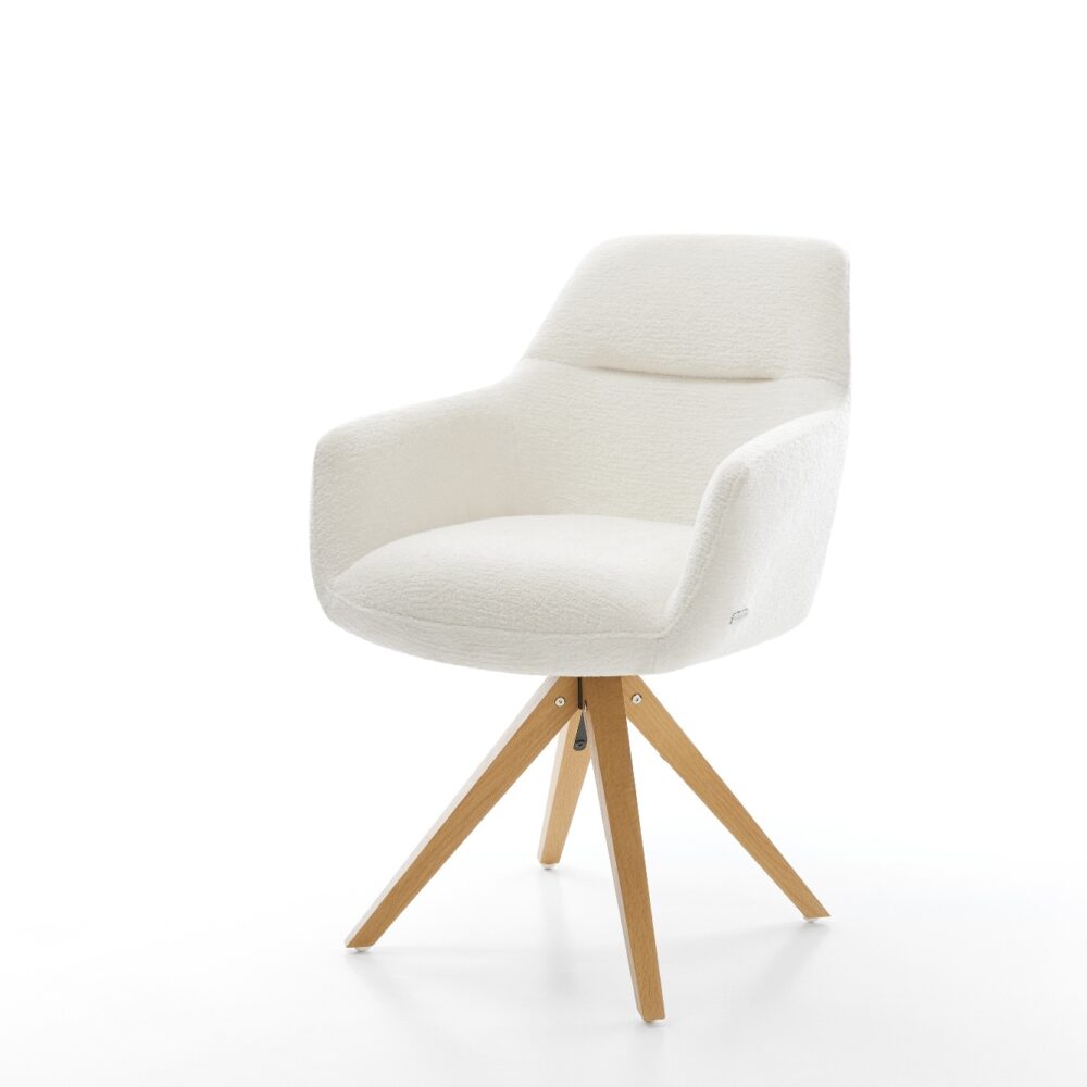 Drehstuhl Abelia-Flex mit Armlehnen Plüsch Creme-Weiß Holzgestell kantig Natur 180° drehbar