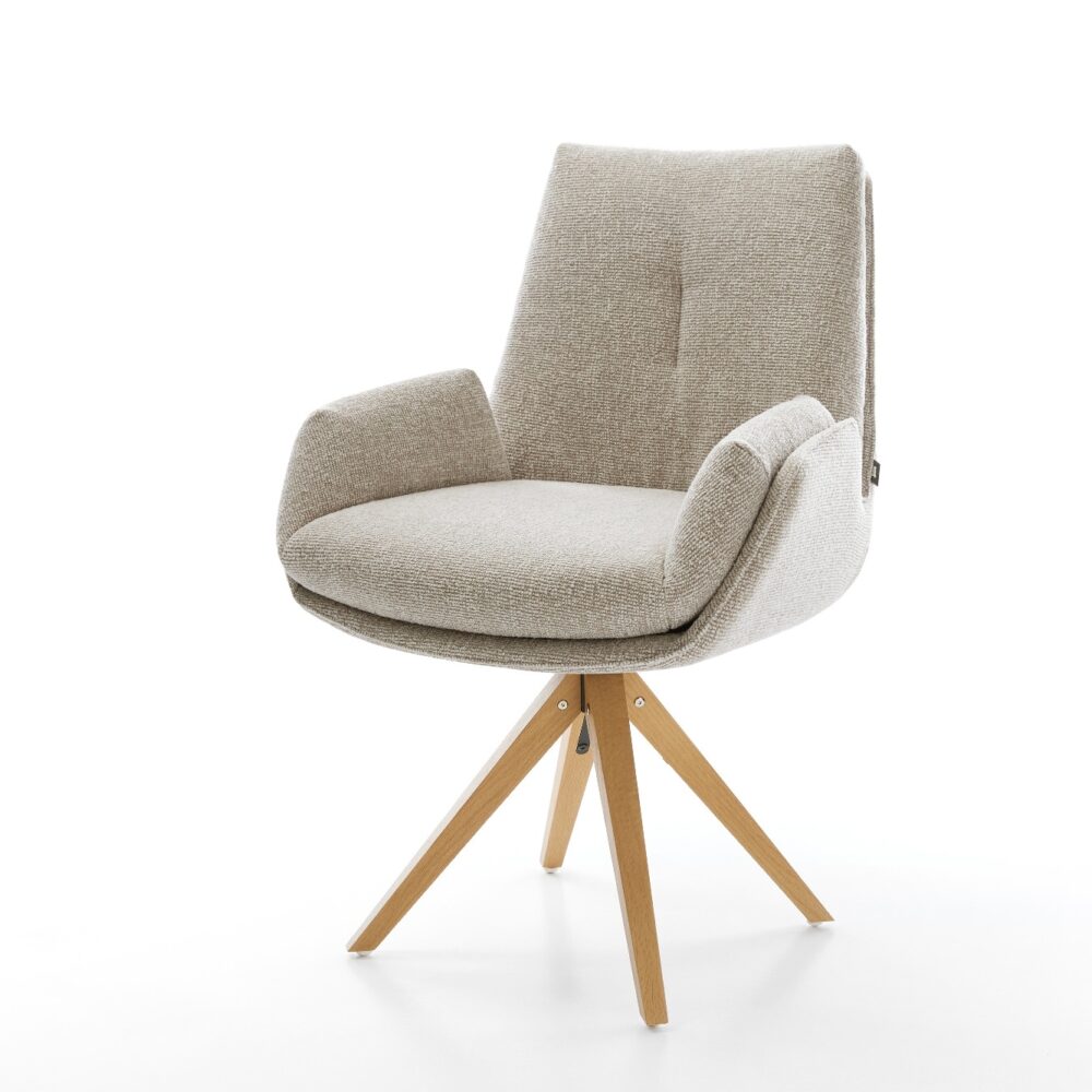 Drehstuhl Nube-Flex mit Armlehnen Webstoff Soft Beige Holzgestell kantig Natur 180° drehbar Taschenfederkern