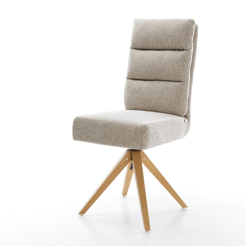 Drehstuhl Lelio-Flex Webstoff Soft Beige Holzgestell kantig Natur 180° drehbar Taschenfederkern
