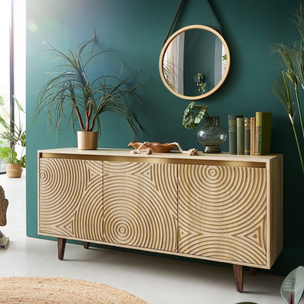 Kommode Budaya 150 cm Mango Natur 3 Türen Fuß vierkant