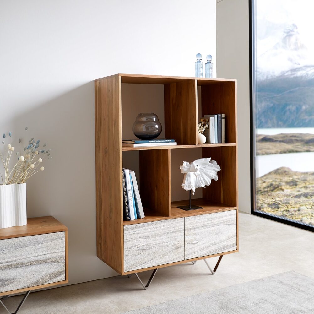 Highboard Stonegrace 115×150 Akazie Natur 12 Fächer Steinfurnier V-Fuß