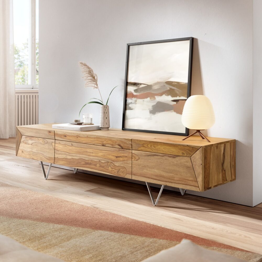 Designer-Lowboard Wyatt 175 cm Sheesham Natur 2 Türen 1 Klappe