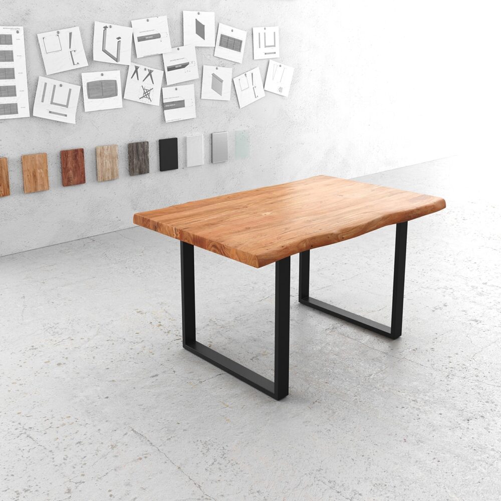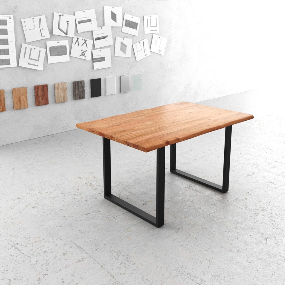 Esstisch Edge 140×90 XL Akazie Natur Metall Schmal schwarz Live-Edge