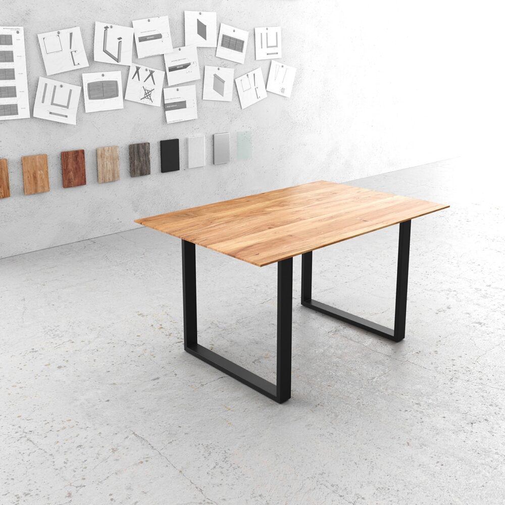 Esstisch Edge 140×90 Akazie Natur Metall Schmal schwarz Schweizer Kante