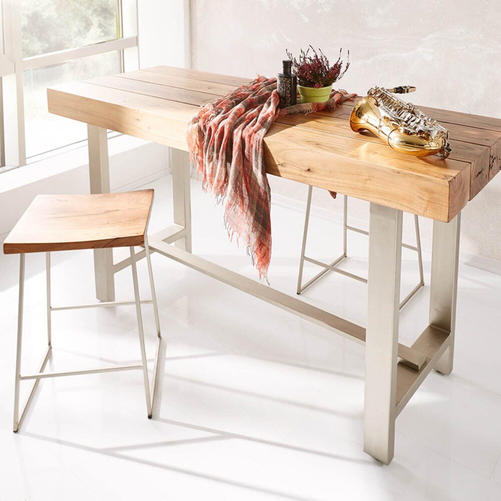 Bartisch Blokk 165×60 cm Akazie Natur Metallgestell