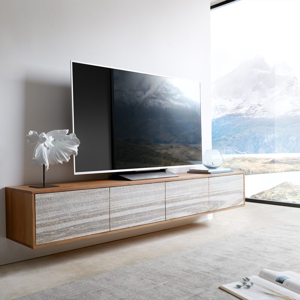 Lowboard Teele 200 cm Akazie Natur Schiefer 4 Türen schwebend