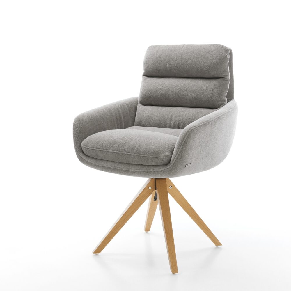 Drehstuhl Abelia-Flex mit Armlehnen Strukturstoff Soft Grau Holzgestell kantig Natur 180° drehbar