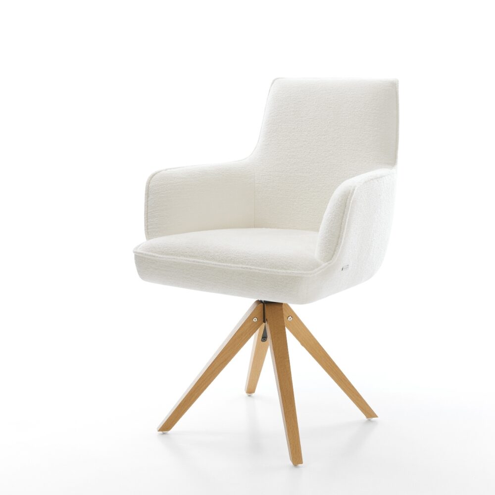 Drehstuhl Heira-Flex mit Armlehnen Bouclé Soft Beige Holzgestell kantig Natur 180° drehbar Taschenfederkern