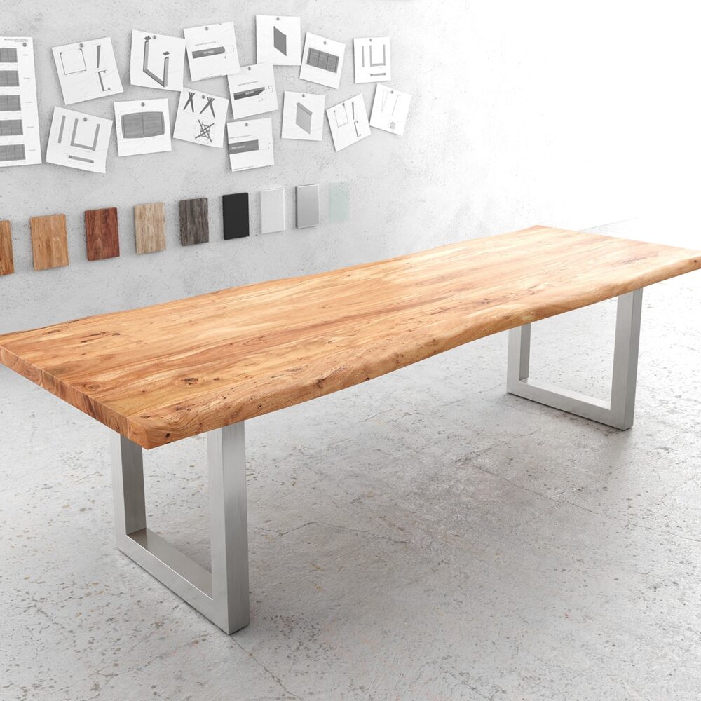 Esstisch Edge 280x100cm XL Akazie Natur Edelstahl breit Live-Edge