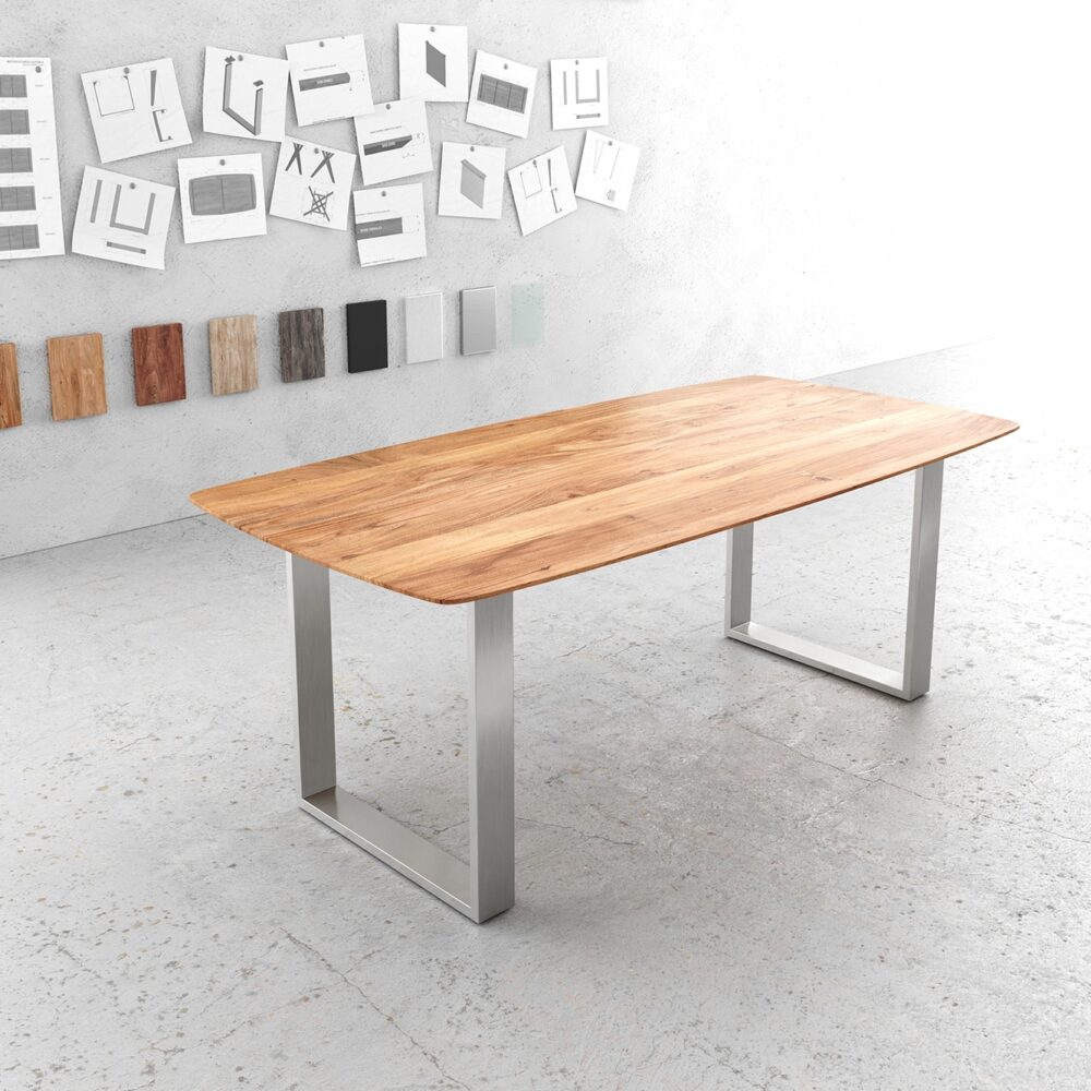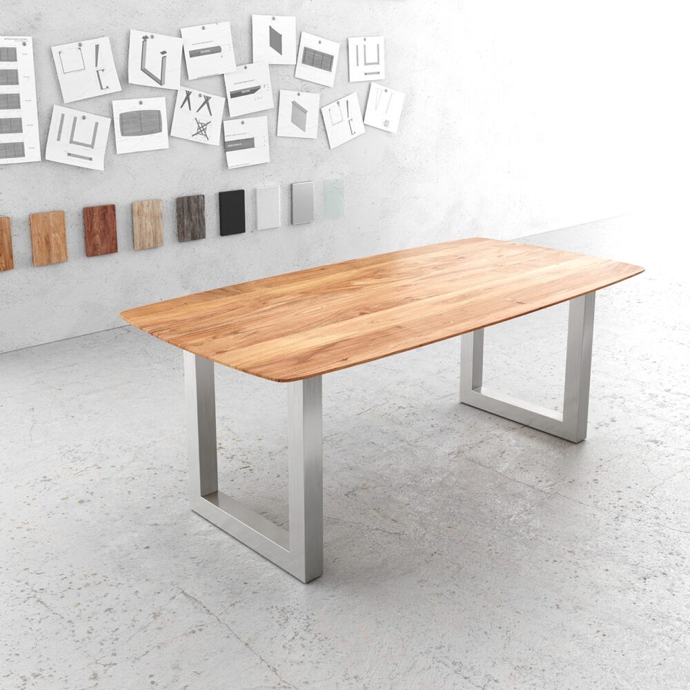 Esstisch Edge Boot 180×90 Akazie Natur Edelstahl Breit Schweizer Kante