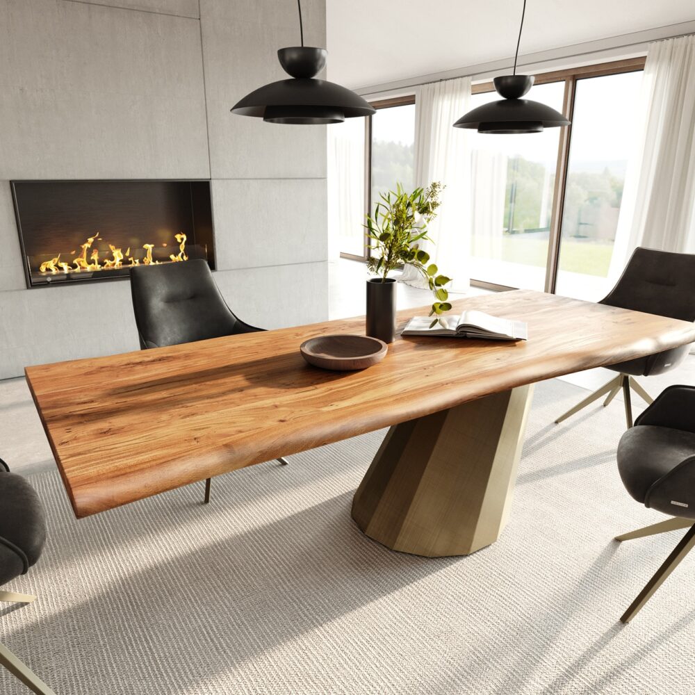 Esstisch Edge 240×100 Akazie Natur Origami Metallic Gold Live-Edge