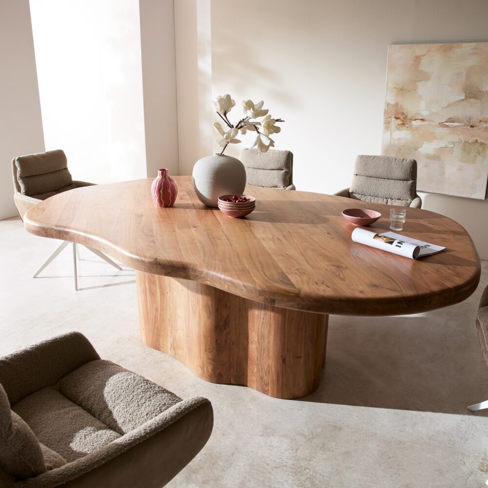 Esstisch Edge 240×100 Akazie Natur Estelar rund Edelstahl Live-Edge