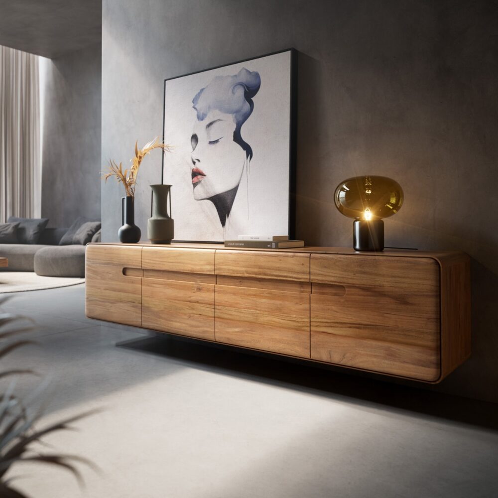Lowboard Anaya 200 cm Akazie Natur 4 Türen Schwebend