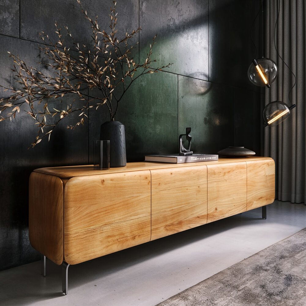 Lowboard Simcha 200 cm Akazie Natur 4 Türen