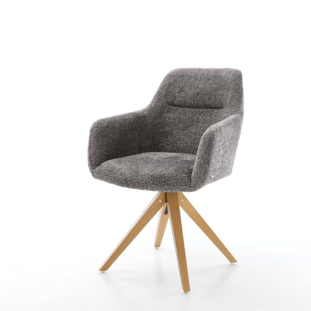 Drehstuhl Heira-Flex mit Armlehnen Bouclé Silbergrau Holzgestell kantig Natur 180° drehbar Taschenfederkern