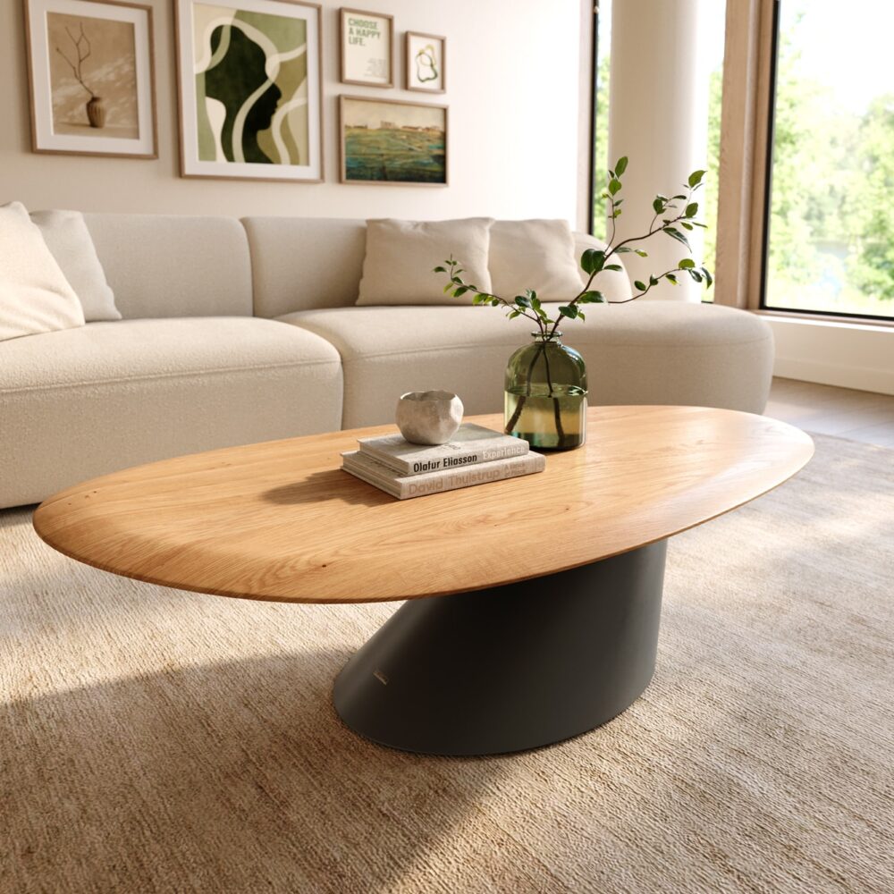 Couchtisch Edge Oval 140×75 cm Eiche Natur Runde Kante Parabi Metall Schwarz