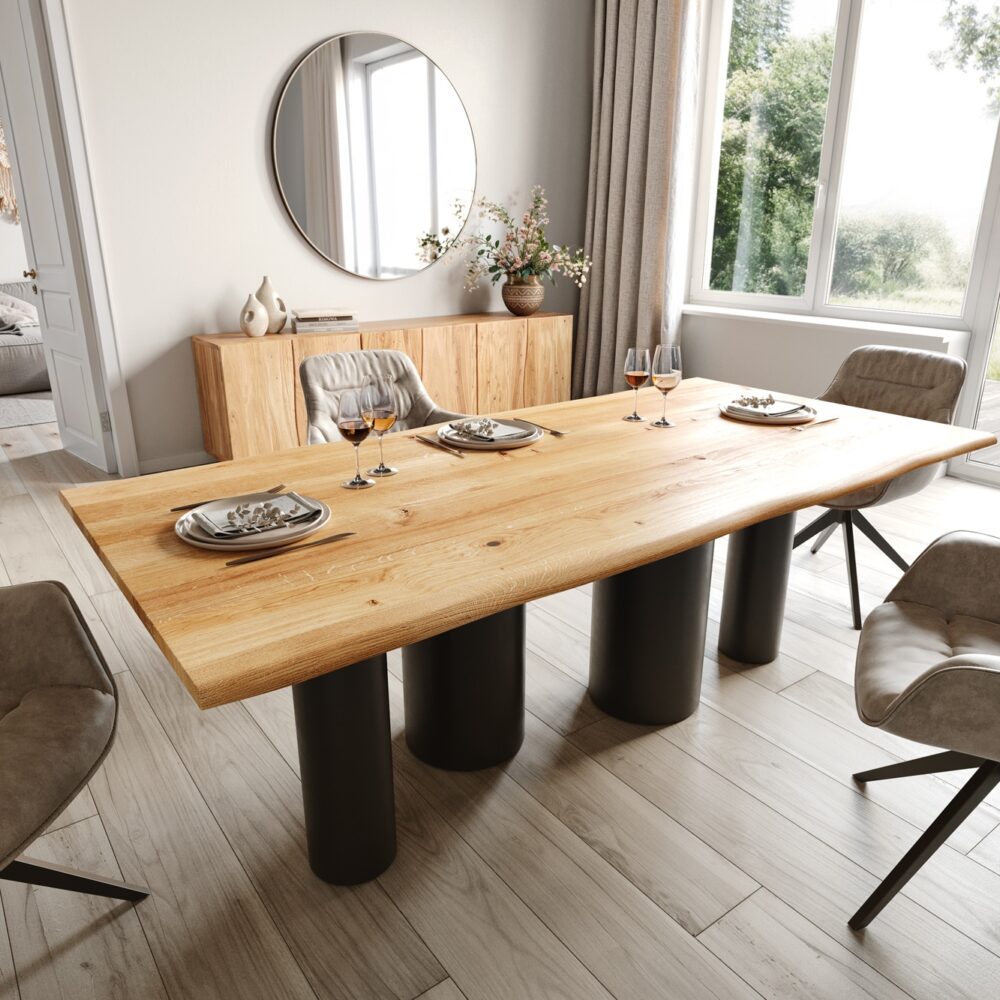Esstisch Edge 200x100x2,5-3 Eiche Natur Pilier Metall Schwarz Live-Edge