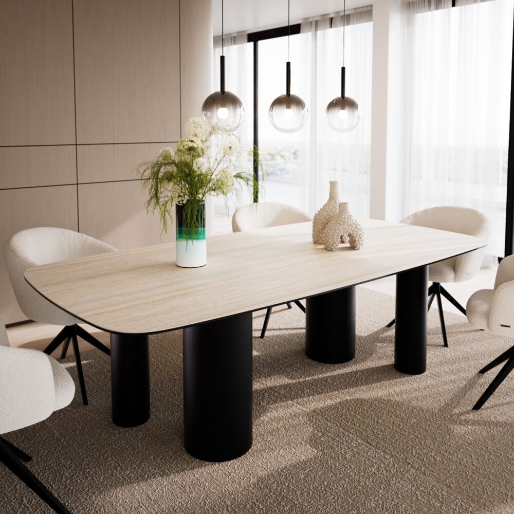 Esstisch Edge Boot 240×120 cm Keramik Travertin Natur Pilier Metall Schwarz