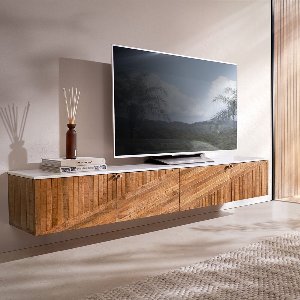 Lowboard Bahan 200 cm Mango Teak 4 Türen Marmorplatte weiss schwebend