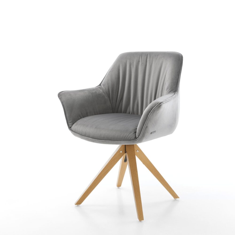 Drehstuhl Greg-Flex Samt Grau Holzgestell kantig 180° drehbar