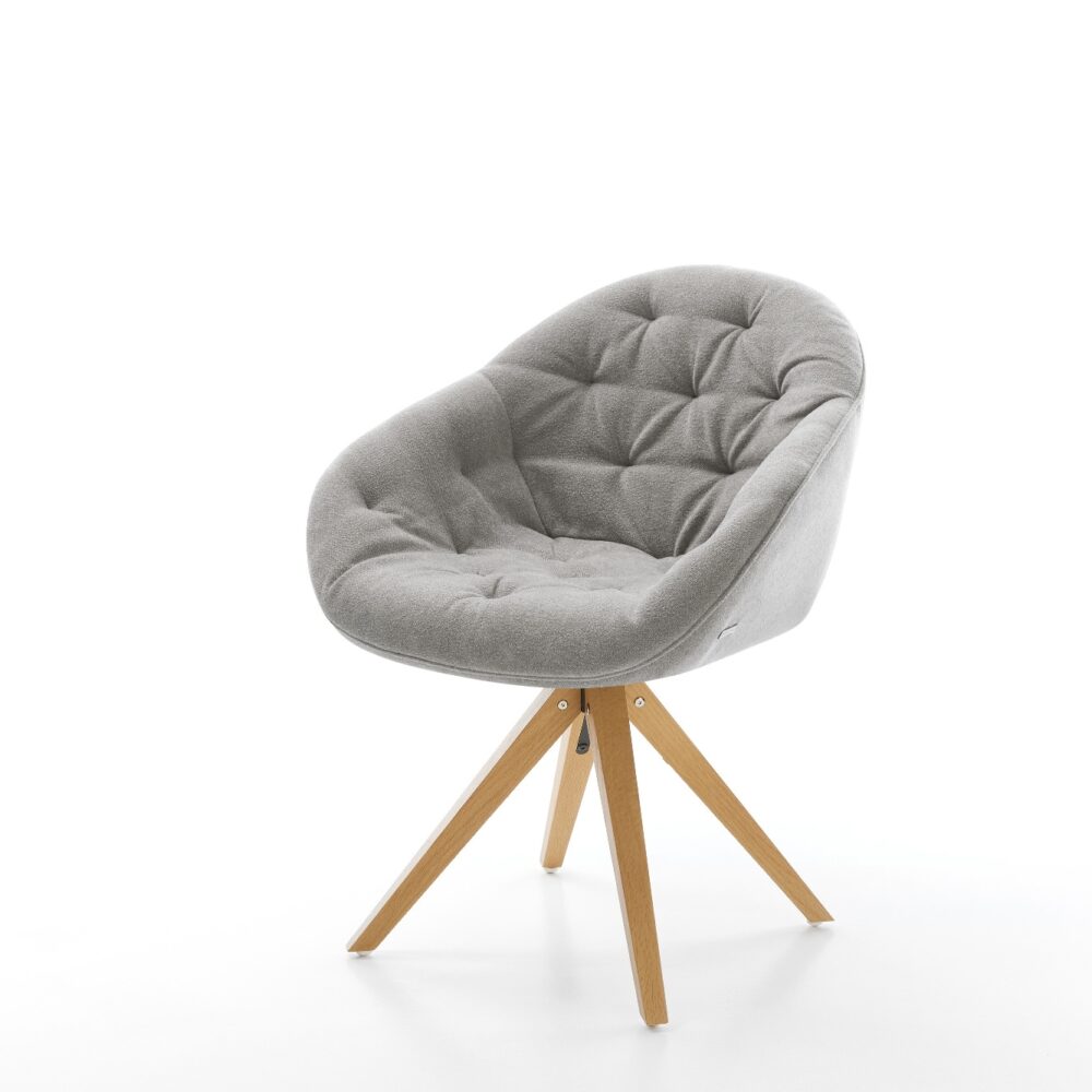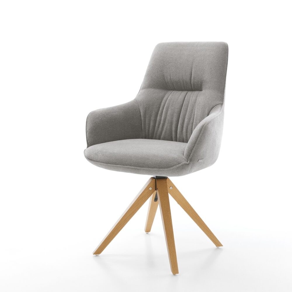 Drehstuhl Nube-Flex Strukturstoff Soft Grau Holzgestell kantig Natur 180° drehbar Taschenfederkern