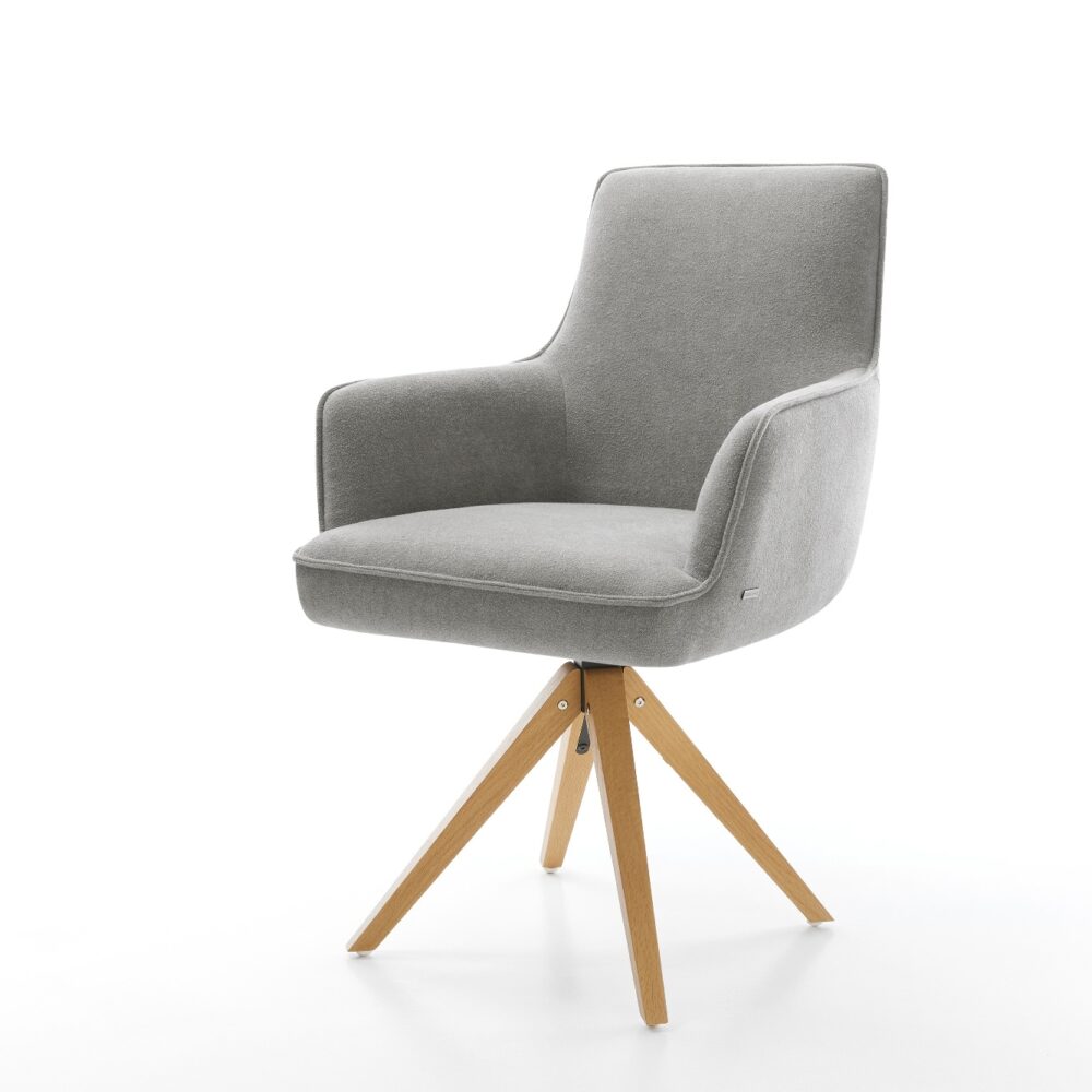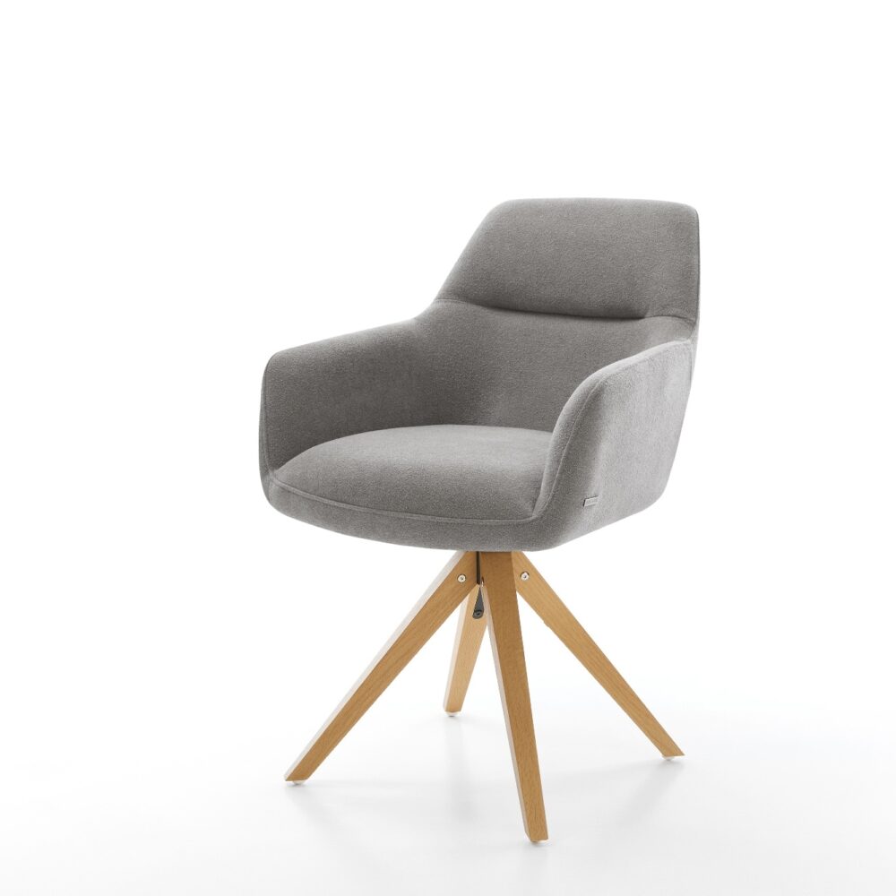 Drehstuhl Keila-Flex mit Armlehnen Strukturstoff Soft Grau Holzgestell kantig Natur 180° drehbar