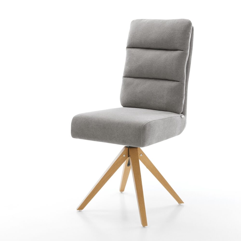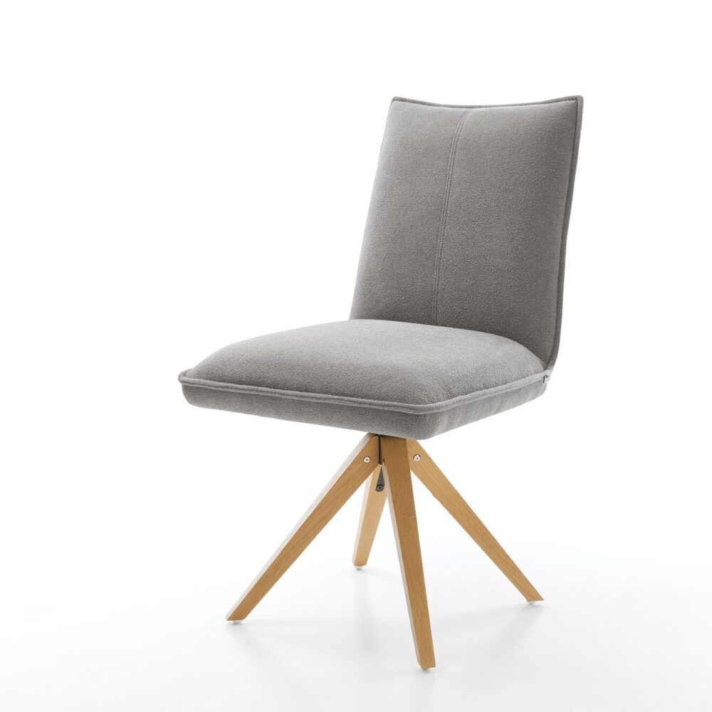 Drehstuhl Lelio-Flex Strukturstoff Soft Grau Holzgestell kantig Natur 180° drehbar Taschenfederkern