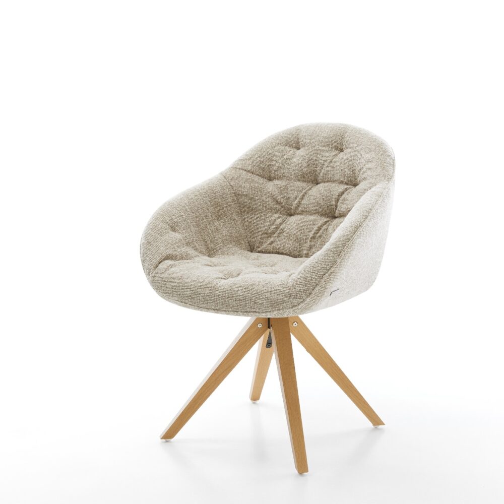 Drehstuhl Nube-Flex Webstoff Soft Beige Holzgestell kantig Natur 180° drehbar Taschenfederkern