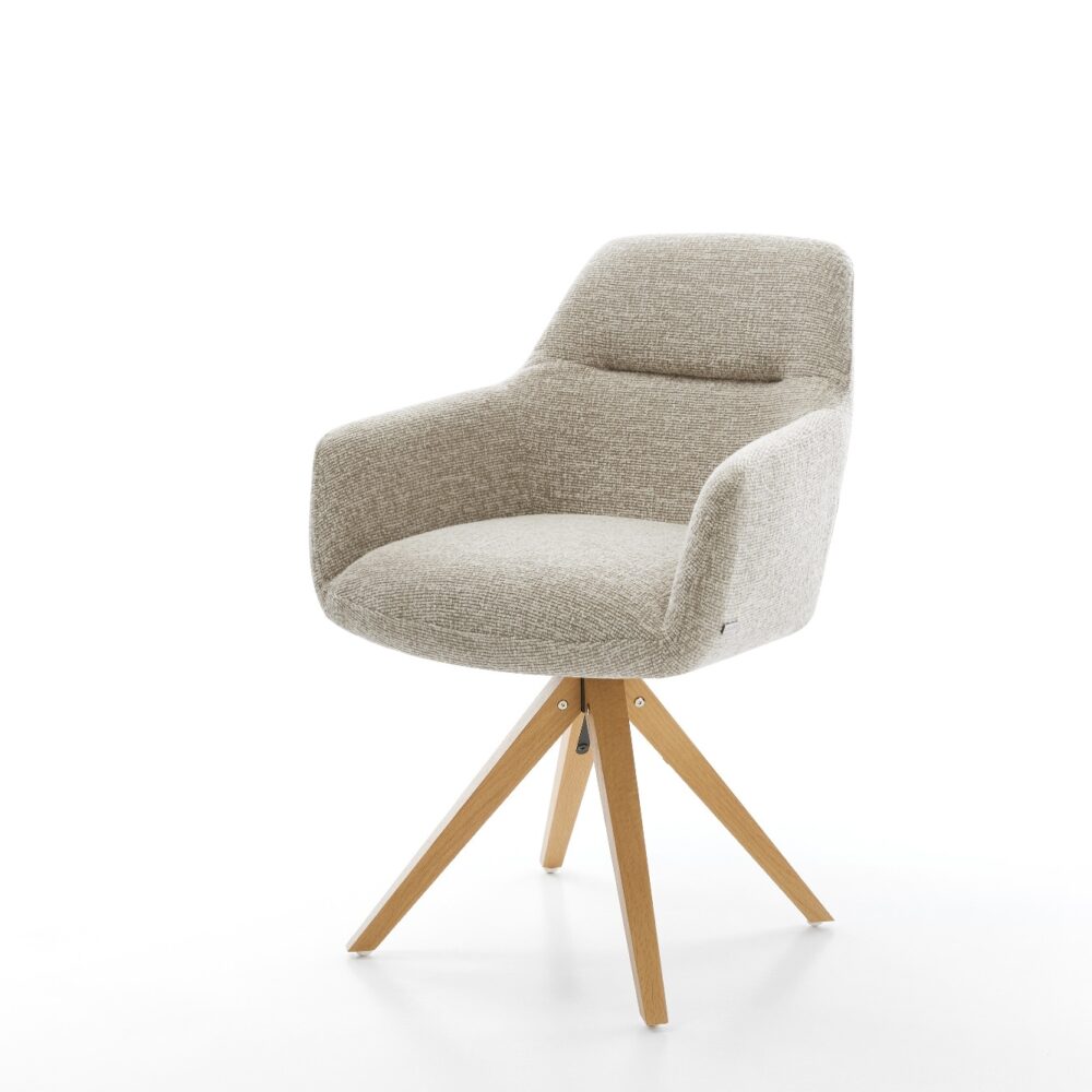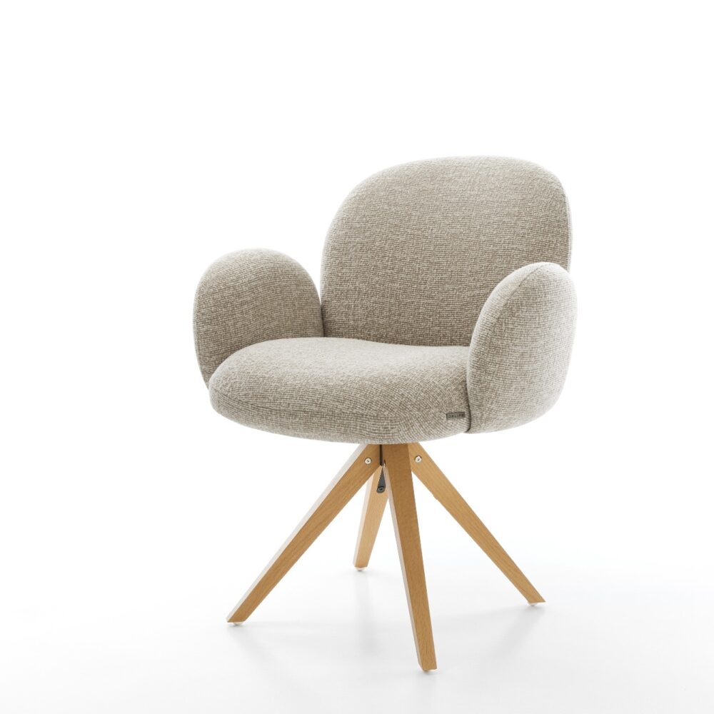 Drehstuhl Abelia-Flex mit Armlehnen Webstoff Soft Beige Holzgestell kantig Natur 180° drehbar