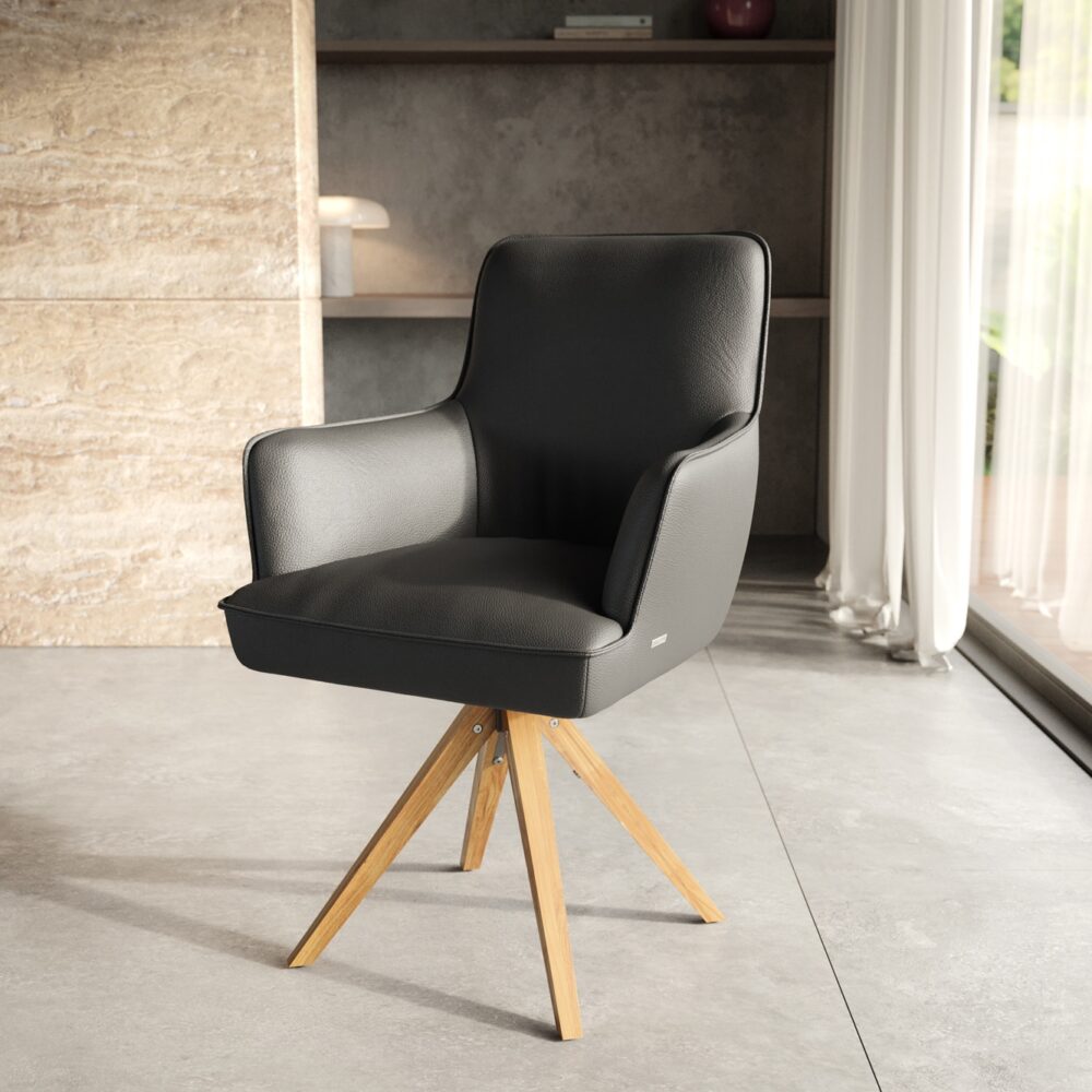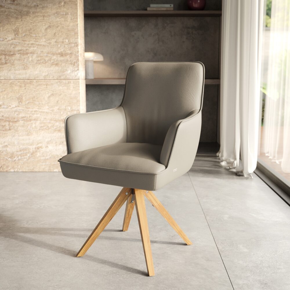 Drehstuhl Vinka-Flex mit Armlehnen Materialmix Schlamm Holzgestell kantig Natur 180° drehbar Taschenfederkern