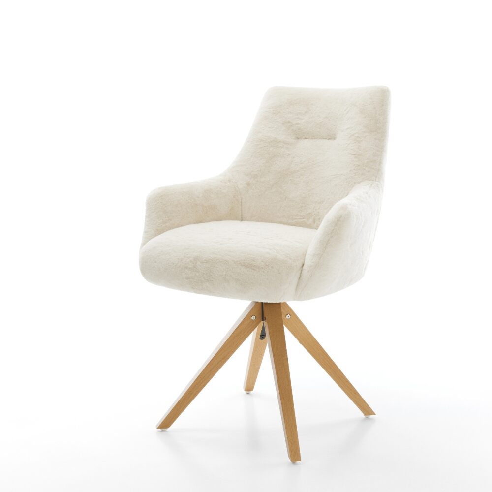 Drehstuhl Alja-Flex mit Armlehnen Plüsch Creme-Weiß Holzgestell kantig Natur 180° drehbar Taschenfederkern