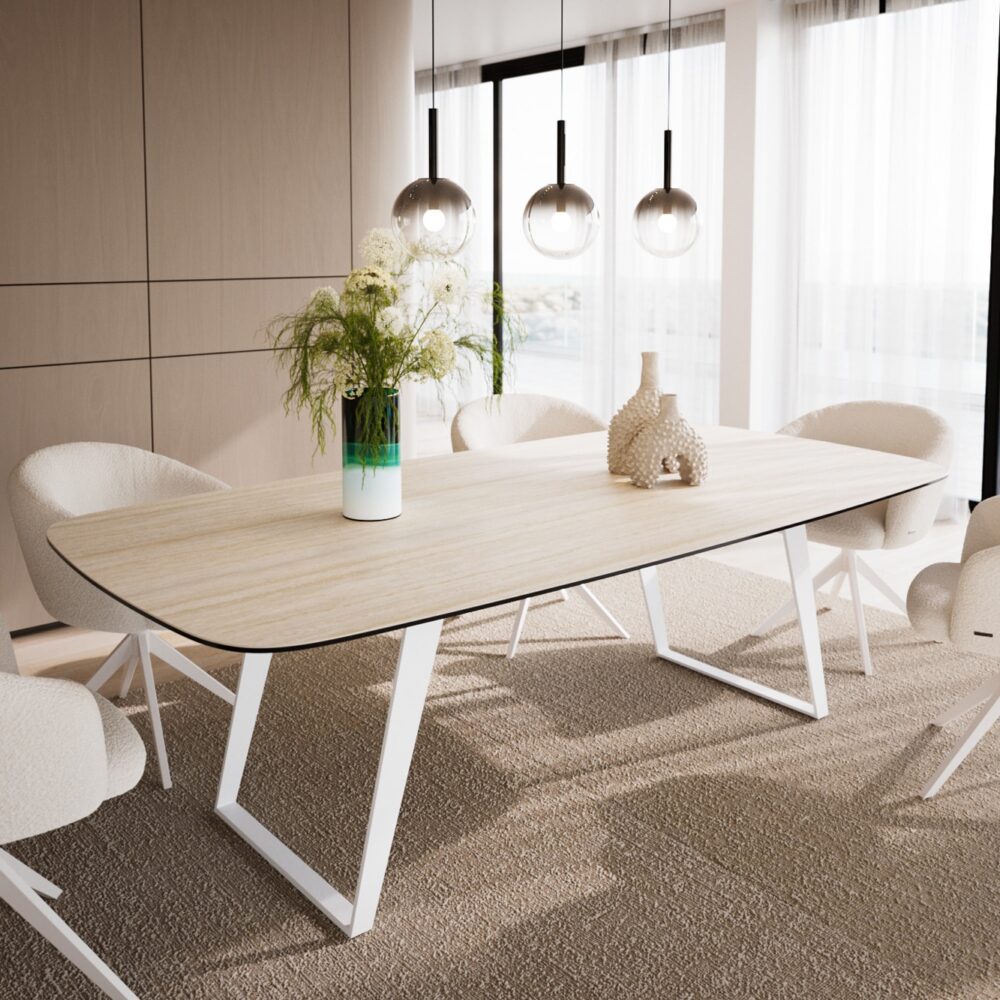 Esstisch Edge Oval 280x130x2,5 Eiche Natur Zenthara kantig Edelstahl Flow-Edge