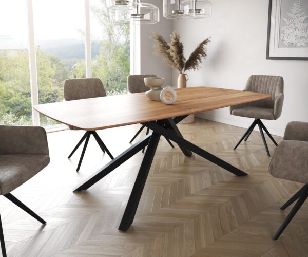 Esstisch Edge Boot 200×100 Akazie Natur Kreuzgestell Rechteck Schwarz Schweizer Kante