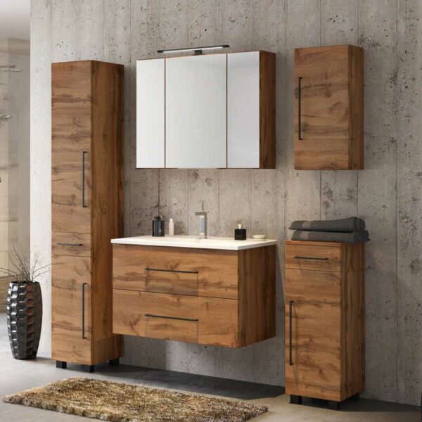 Komplett Badmöbel Set in Wildeichefarben LED Beleuchtung (fünfteilig) von Star Möbel