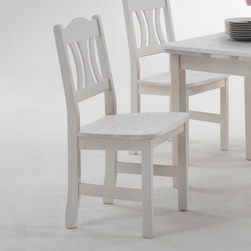 Landhaus Essgruppe in Weiß Kiefer massiv (fünfteilig) von Life Meubles