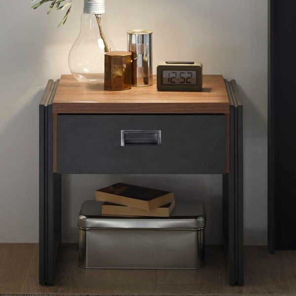 Nachtkonsole in Eiche dunkel Schiefer Grau Loft Design von Brandolf