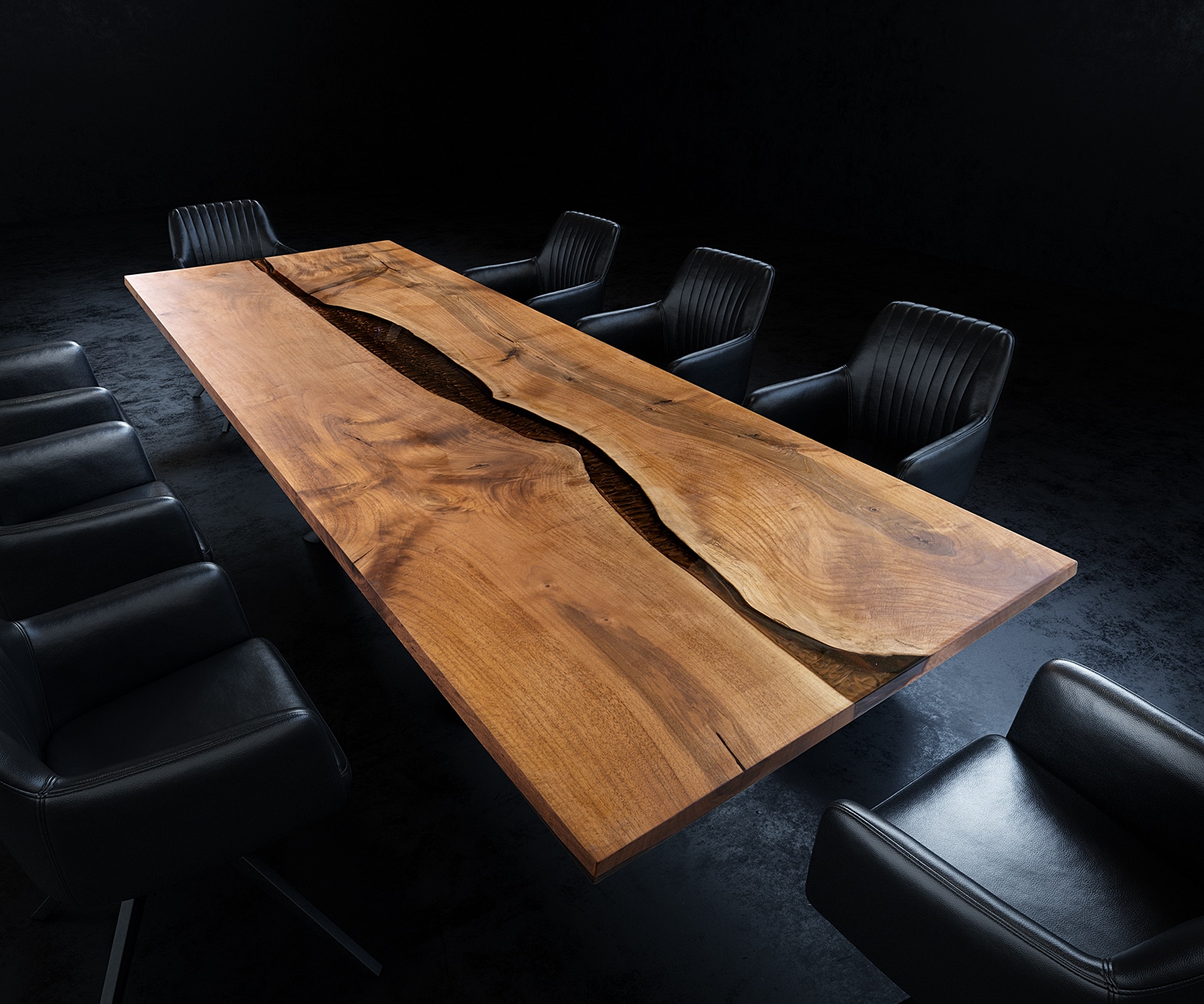 Tischplatte Walnuss Natur 300 cm Epoxid Metallic-Braun Unikat Nr. 32291